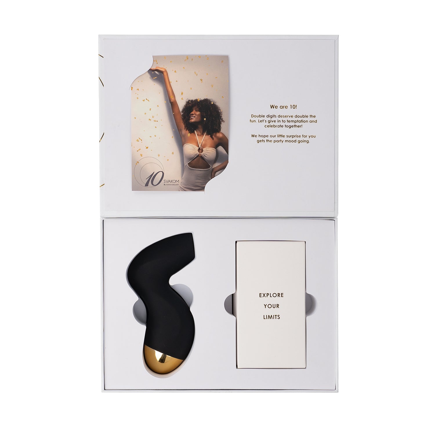 Para quienes aman y apoyan SVAKOM, la marca ha lanzado un número limitado de una lujosa caja de regalo con un magnífico diseño, que combinando su color blanco con detalles dorados te hará sentir la exclusividad de tener el producto. Esta caja contiene en su interior el último modelo de su Pulse Pure y un lindo kit de bondage para que pases un momento inolvidable.